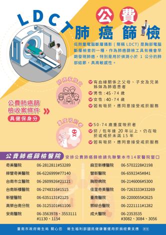 守護呼吸健康,給肺部一個清新的機會。如果您或家中長輩符合資格,請趕快聯繫 本市14家公費肺癌篩檢醫院醫療窗口預約。