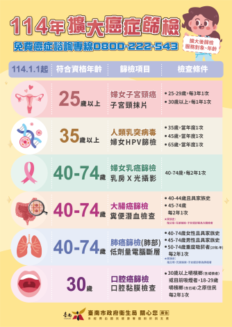鼓勵民眾應積極定期接受癌症篩檢,維護自身及家人的健康!