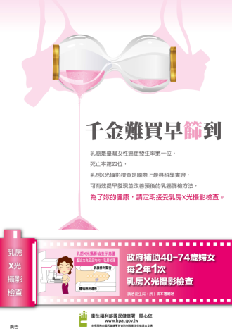 三、乳癌篩檢:40至未滿75歲婦女,每2年1次乳房攝影檢查。