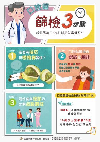 口腔癌為我國青壯年(25-44歲)男性最容易發生的癌症,平均死亡年齡為54歲,較其他癌症早10年以上。嚼檳榔、吸菸是造成口腔癌的主因。國外研究顯示,口腔黏膜檢查可有效降低口腔癌之死亡率。