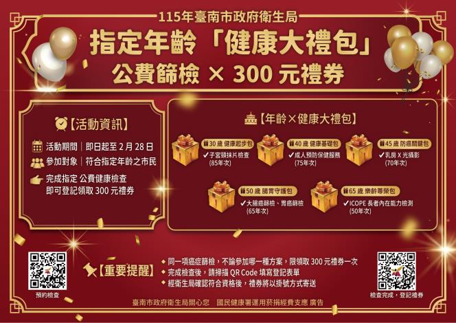 115年市民專屬:一『馬』當先,健康臺南,篩檢大禮包。