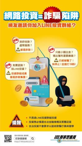 網路投資有陷阱,不透過line群組投資,投資慎選合法金融機構投資 ,避免被詐騙